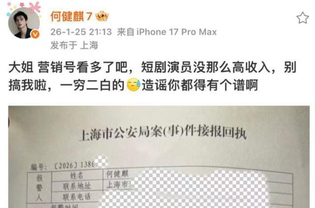 工作室 发布声明后不到半小时,何健麒本人就晒出了他的报案回执,同时还调侃举报人,营销号看多了吧,造谣你都得有个谱啊。