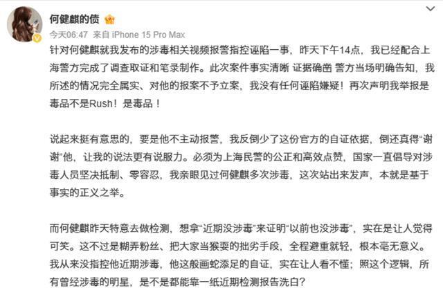 然而就在何健麒刚刚做完发检尿检,当天就被举报者打脸了。