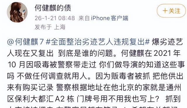 如果说私生活不检,还能让何健麒勉强留在短剧圈,那涉毒基本实锤的情况下,他的演艺生涯基本到头了。