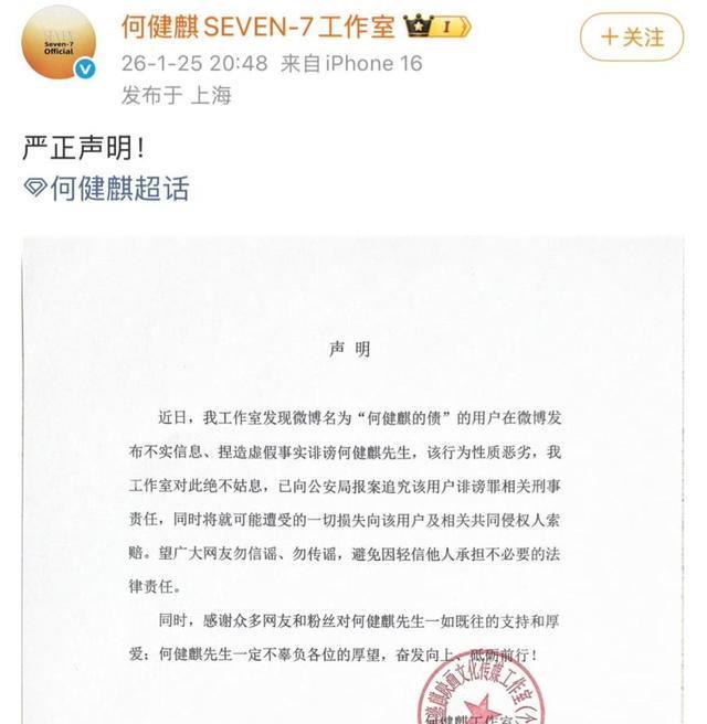 举报视频刚发出去一个多小时,何健麒工作室的严正声明就出来了。