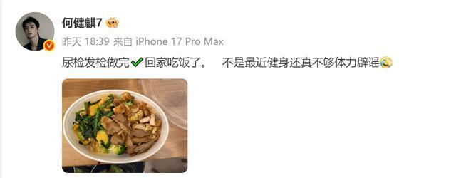 打铁要趁热,何健麒为了证明自己清白,1月26日,又主动去做了尿检发检,向网友通报后,他又忍不住调侃,不是最近健身还真不够体力辟谣。
